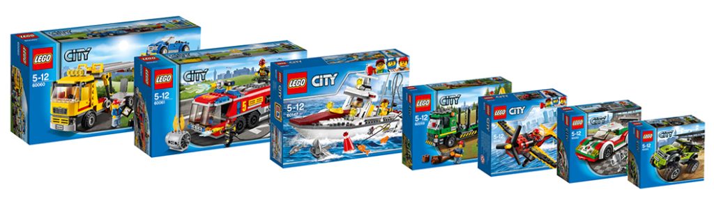 Développement de l’identité graphique des marques utilisées dans l’univers LEGO City, des personnages et des détails des véhicules des gammes proposées en 2014 et 2017.