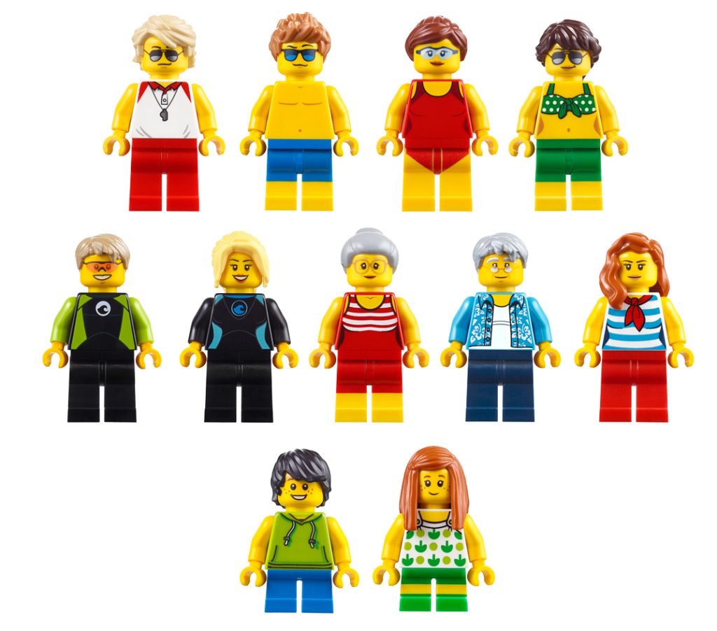 L’objectif des boites de personnages et de peupler les villes construites par les enfants en LEGO. Cette année là, le thème était la plage. J’ai gardé en tête l’objectif d’inclusivité et de diversité afin de créer une large variété de personnages en terme d’âge, de genre etc…