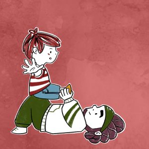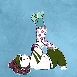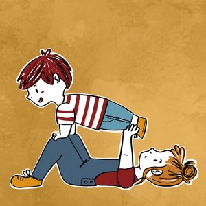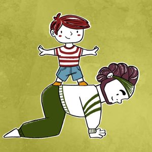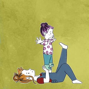 Deux psychomotriciennes avaient en projet de créer un livre de portés acrobatiques parents-enfants pour inviter à créer des temps de qualité en famille. J’ai travaillé à la fois sur les illustrations et la mise en page des textes. Le projet a été mis en pause pour le moment, mais mon travail est là !